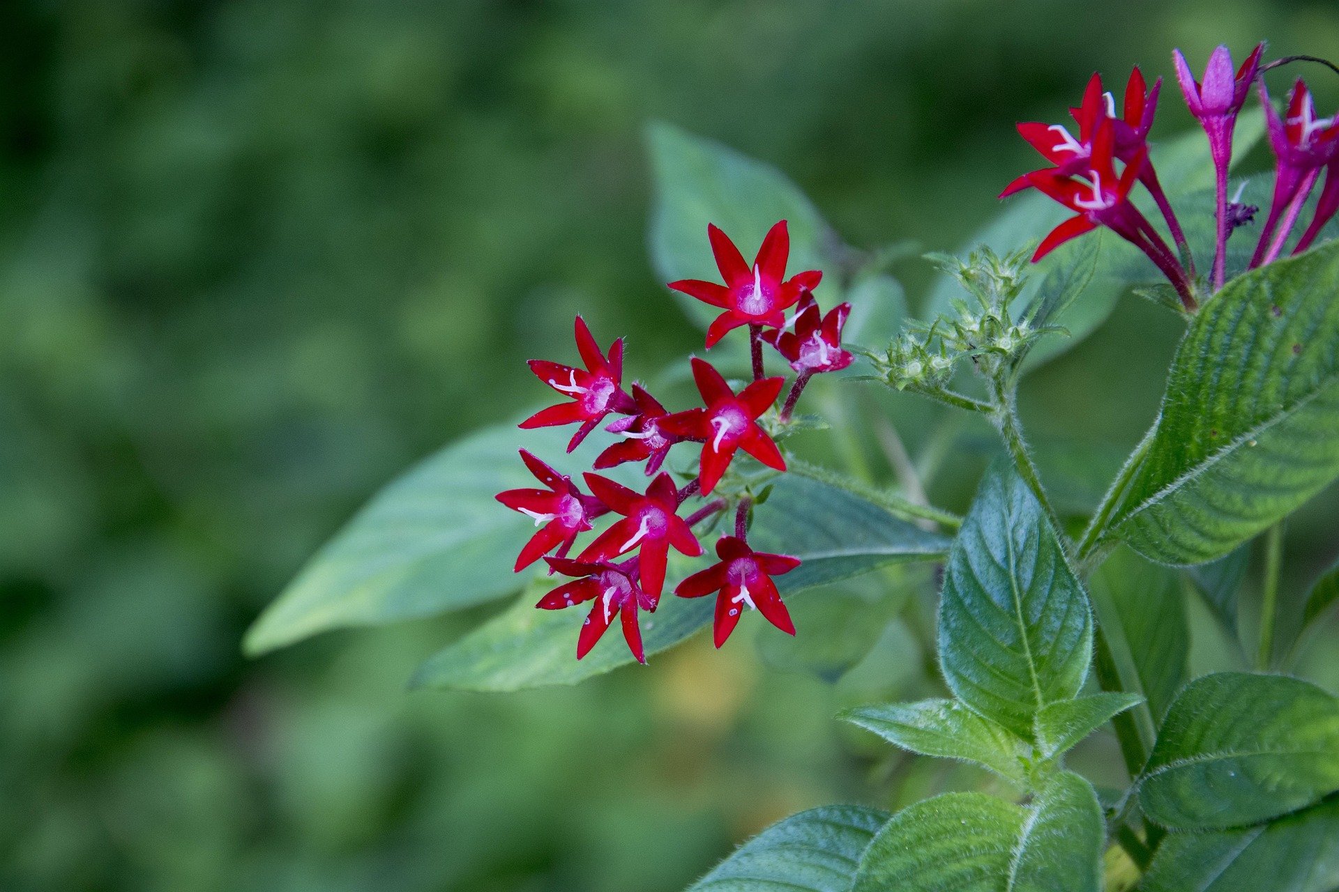 A hummingbird magnet. Bright red or pink pom-pom blooms loaded with nectar. Bonus: bees and butterflies love it too.